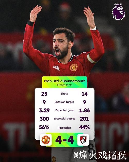 曼联对阵伯恩茅斯刷新本赛季英超单场射门数纪录,达39次。